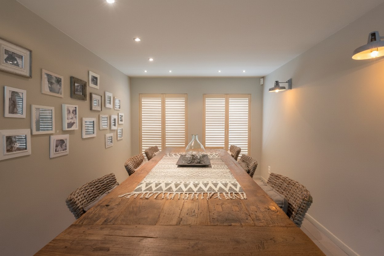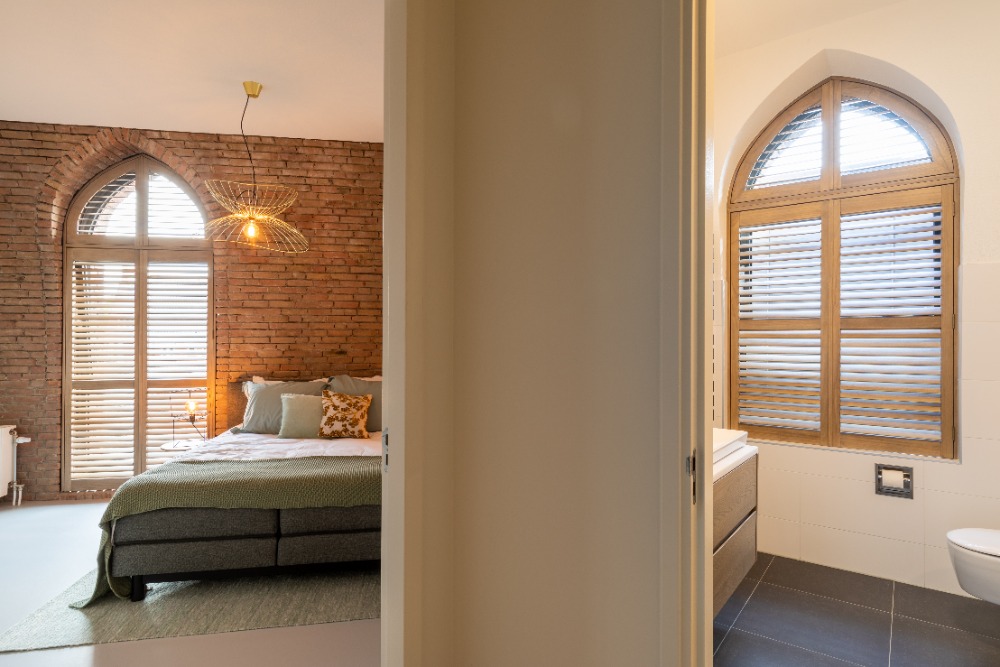 • Houten beige shutters: zorgen voor een rustige, elegante basis met veel controle over het licht. Dankzij het maatwerk sluiten ze perfect aan op elk type raam.