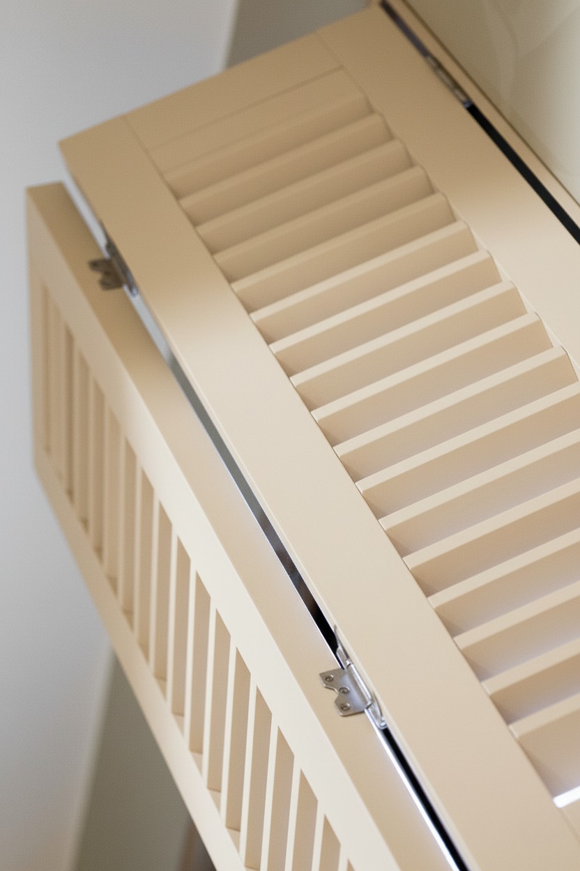 • Kunststof beige shutters: zijn ideaal voor vochtige ruimtes zoals de badkamer of keuken. Ze zijn onderhoudsvriendelijk en bestand tegen vocht en temperatuurverschillen.